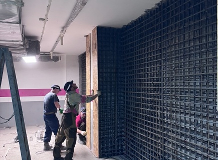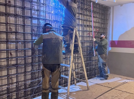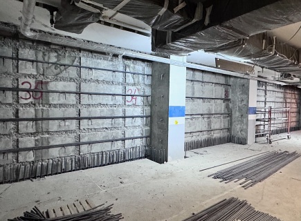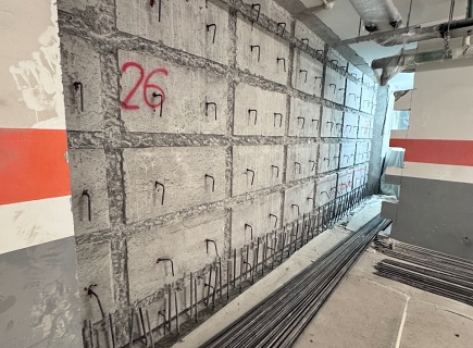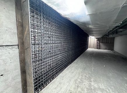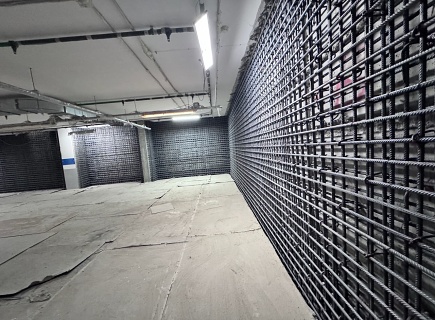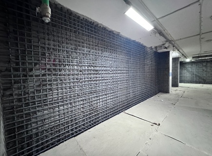 Выполнена уникальная и сложная задача по усилению ограждающих конструкций паркинга путём изготовления железобетонной «рубашки» толщиной 220 мм с применением бетона класса B60.