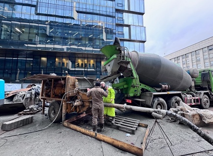Общий объём уложенного бетона составил 400 м³. Работы выполнены в срок и с надлежащим качеством.
