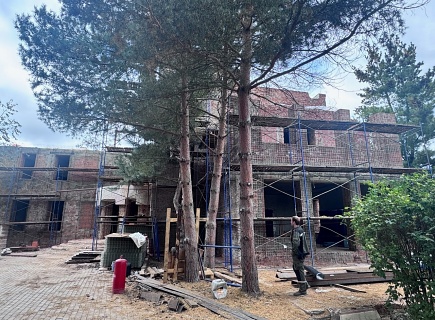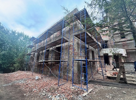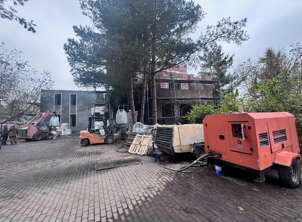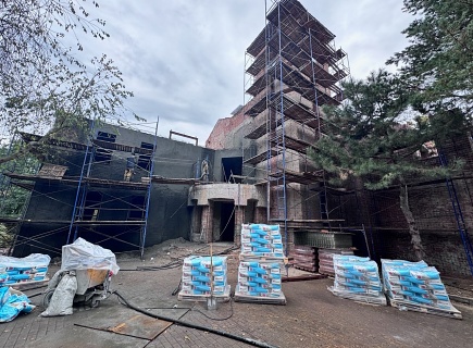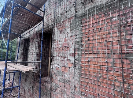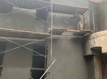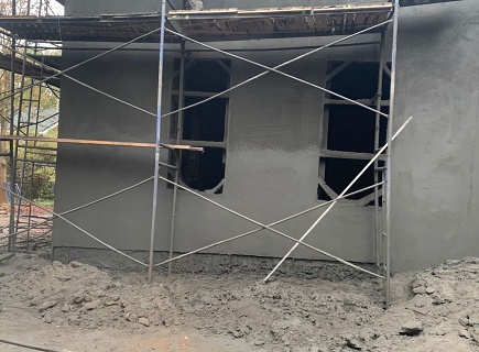 По результатам выполнения строительно‑монтажных работ произведено усиление наружных стен здания методом сухого торкретирования с применением бетона класса B40. Сформирован защитный слой толщиной 90 мм с последующей финишной обработкой поверхности до класса качества А6. Полученное основание соответствует требованиям для устройства тяжёлого декоративного фасада в соответствии с проектной документацией.