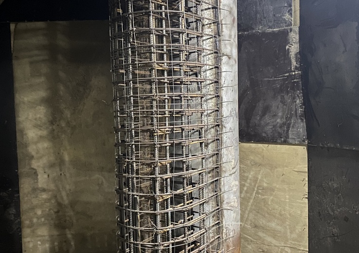 Выполнена работа по изготовлению круглых колонн диаметром 1м методом сухого торкретирования бетоном В40 без традиционных опалубочных систем.